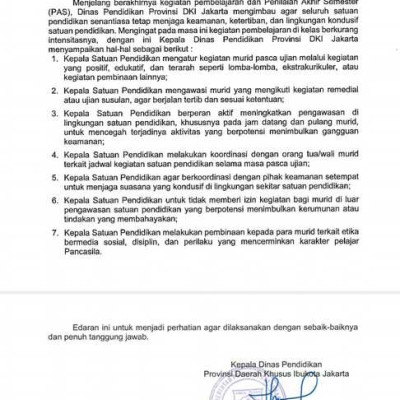 Kepala Suku Dinas Pendidikan Jakarta Utara Wilayah II Sampaikan 10 Himbauan Penting Jelang Akhir Semester dan Libur SekolahJakarta Utara –