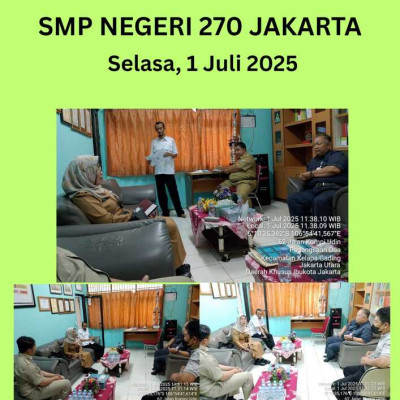 KUNJUNGAN KASATLAKCAM KECAMATAN KELAPA GADING KE SMPN 270 JAKARTA DALAM RANGKA MONITORING DAN EVALUASI SPMB SERTA PERSIAPAN KBM TAHUN PELAJARAN